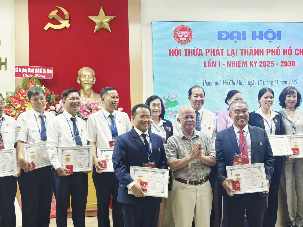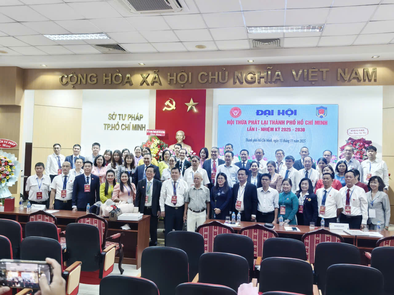 Vào ngày 15/11/2025, tại hội trường Sở Tư pháp Tp. Hồ Chí Minh, Hội Thừa phát lại Thành phố Hồ Chí Minh (Hội TPL TPHCM) đã long trọng tổ chức Đại hội bất thường lần thứ I với sự tham gia của ông Nguyễn Thanh Bình – Phó Chánh văn phòng Bộ Tư pháp, bà Nguyễn Thị Phương Ngọc – Phó giám đốc Sở Tư pháp Tp. Hồ Chí Minh, ông Trần Văn Hiếu – Phó trưởng Phòng Nghiệp vụ II đại diện Thi hành án dân sự Tp. Hồ Chí Minh, bà Nguyễn Mai Trâm – Phó Chánh văn phòng Tòa án nhân dân Tp. Hồ Chí Minh, bà Nguyễn Thị Thanh Tâm – đại diện Sở Nội vụ Tp. Hồ Chí Minh cùng đại diện của các tổ chức xã hội-nghề nghiệp tại Thành phố Hồ Chí Minh như: Hội Trọng tài thương mại Tp. Hồ Chí Minh, Hội Công chứng viên Tp. Hồ Chí Minh, Đoàn Luật sư Tp. Hồ Chí Minh,… và đặc biệt là sự tham gia của các Thừa phát lại là hội viên của Hội TPL TPHCM.