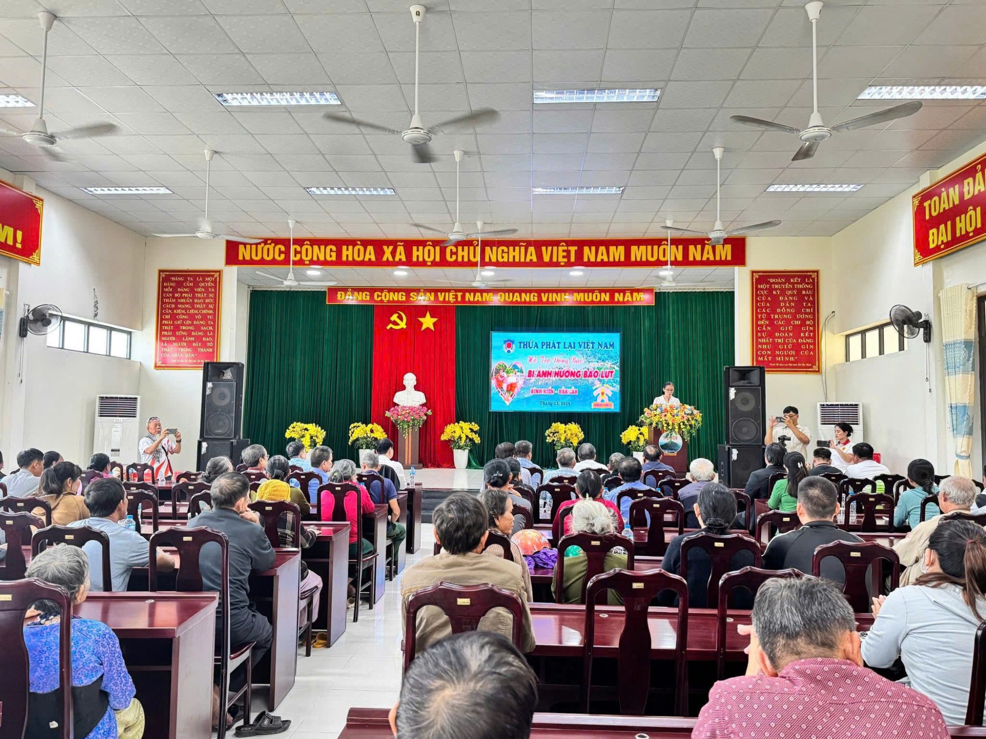 Trước tình hình đó, với tinh thần “tương thân tương ái”, chung tay vì cộng đồng, sáng ngày 11/12/2025, Đoàn Thừa phát lại Việt Nam đã tổ chức chương trình thăm hỏi, động viên và trao quà hỗ trợ cho người dân phường Bình Kiến, tỉnh Đắk Lắk. Hoạt động thể hiện sự quan tâm sâu sắc của đội ngũ Thừa phát lại Việt Nam đối với những khó khăn, mất mát mà người dân địa phương đang phải gánh chịu, đồng thời góp phần hỗ trợ địa phương trong công tác khắc phục hậu quả thiên tai.