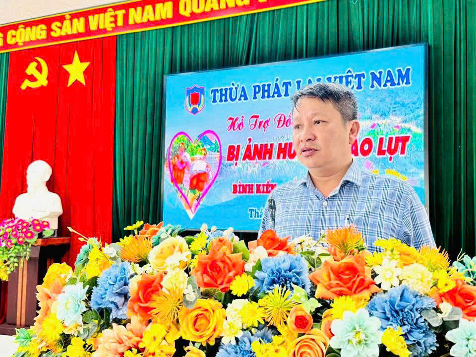 Phát biểu tại chương trình, đồng chí Nguyễn Lê Vi Phúc – Bí thư Đảng ủy, Chủ tịch HĐND phường Bình Kiến, bày tỏ sự trân trọng trước tình cảm và sự hỗ trợ kịp thời của Đoàn Thừa Phát Lại Việt Nam. Đồng chí khẳng định đây là nguồn động viên lớn lao, giúp địa phương và người dân có thêm điều kiện khắc phục hậu quả mưa lũ, góp phần bảo đảm an sinh xã hội và tăng cường điều kiện ứng phó, phòng chống thiên tai tại cơ sở.